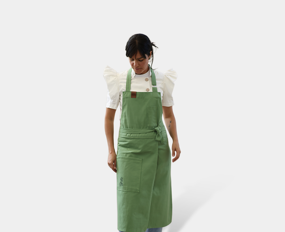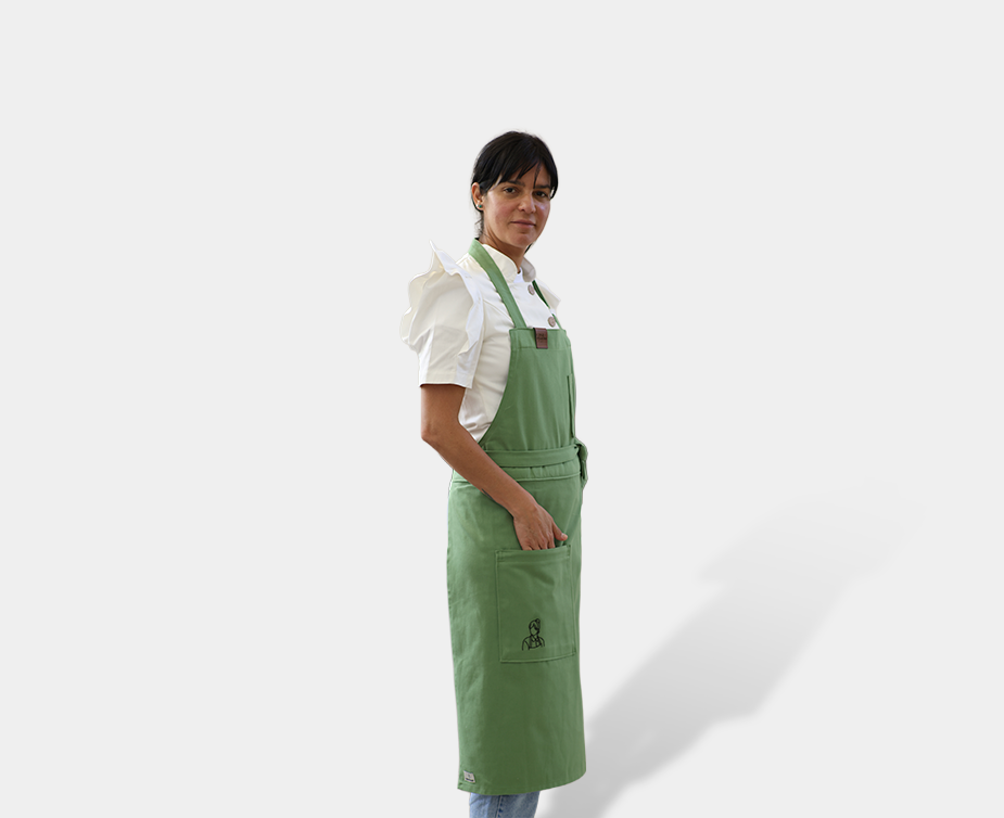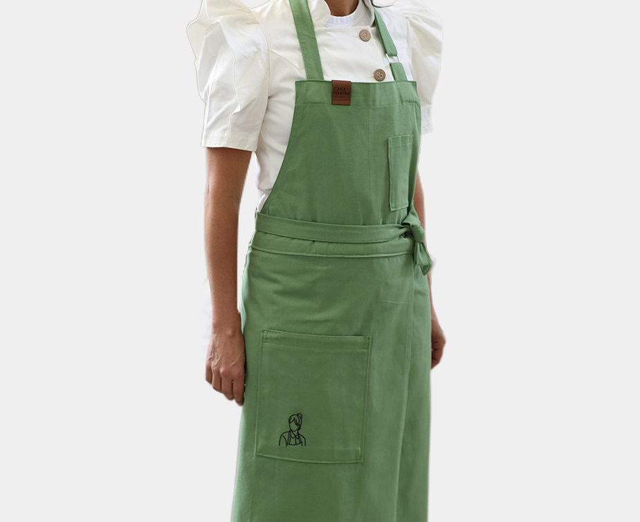 Avental funcional com estética minimalista para o dia a dia na cozinha.