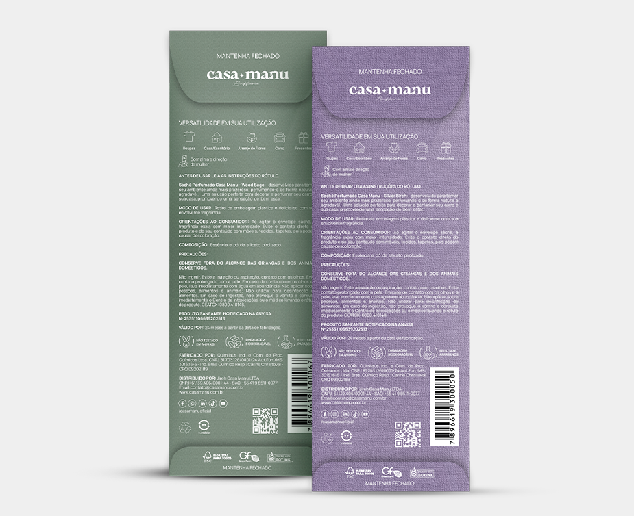 O sachê Casa Manu libera fragrância contínua para manter seu ambiente sempre aconchegante.