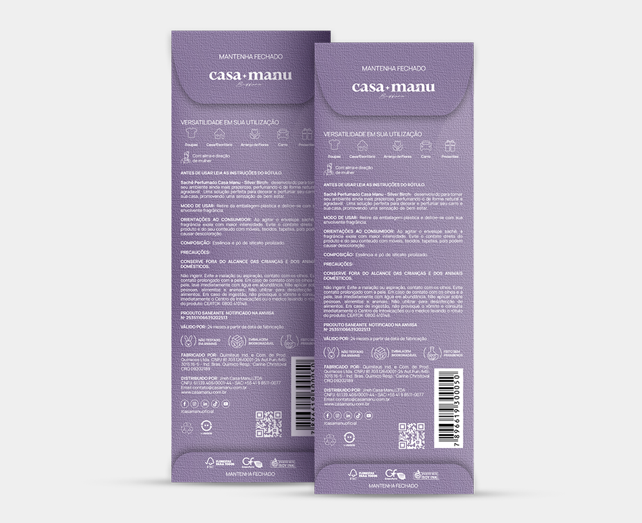 O Sachê Perfumado Casa Manu – Silver Birch leva sofisticação e frescor ao seu dia a dia. Com fragrância envolvente e duradoura, é ideal para perfumar e decorar sua casa, closet ou carro, criando uma atmosfera aconchegante e agradável.